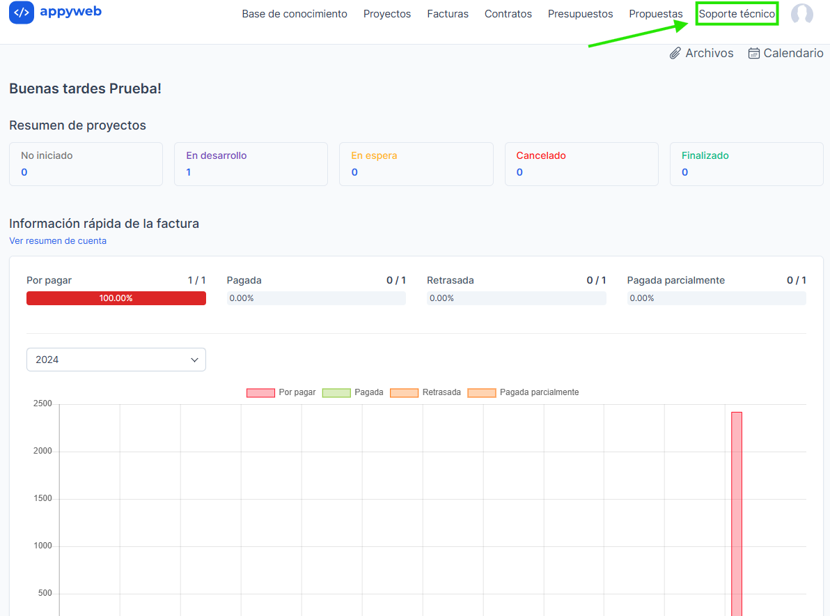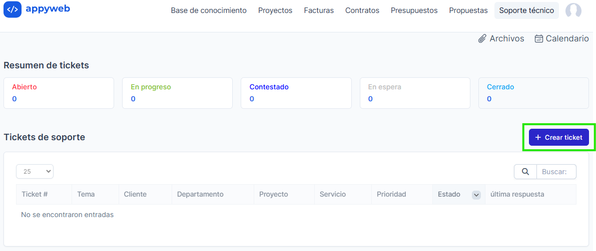 Una vez dentro, pinchamos en "+ Crear ticket".