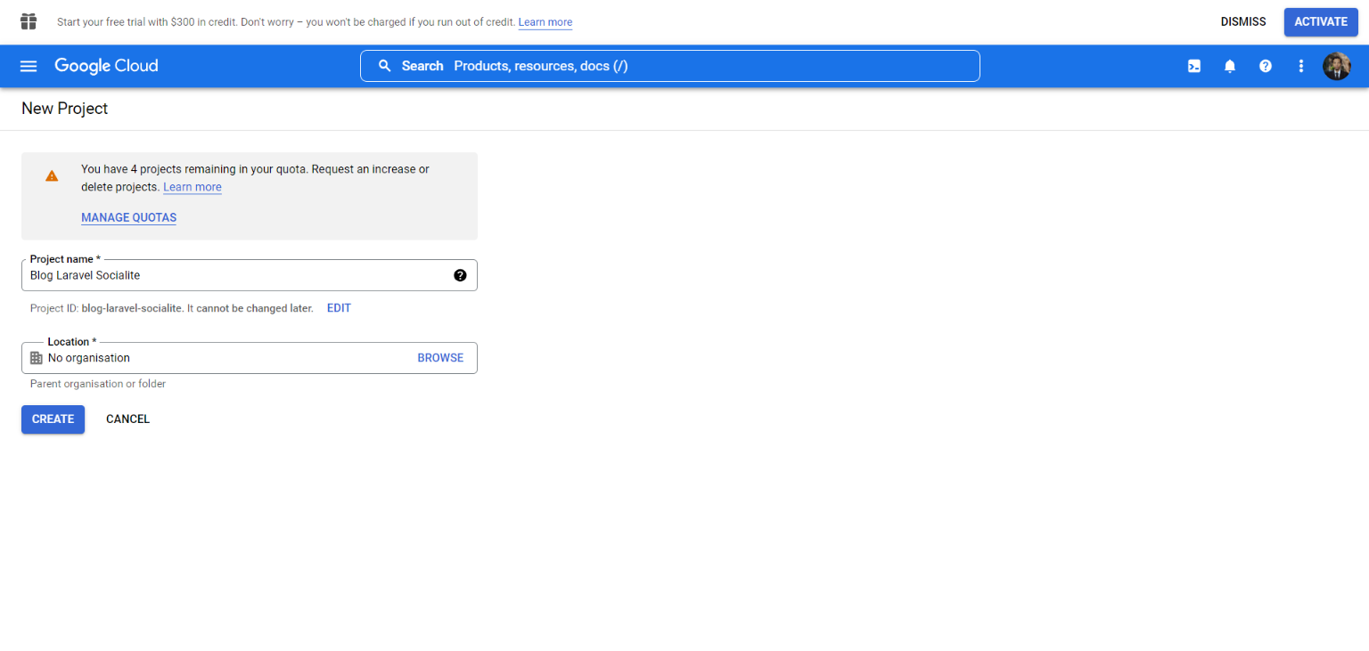Complete el detalle sobre su proyecto, aquí está el ejemplo y luego haga clic en "Crear".
