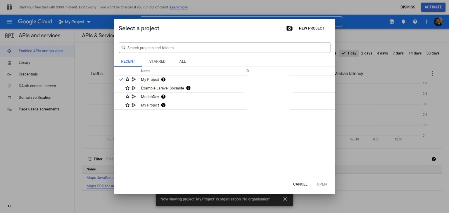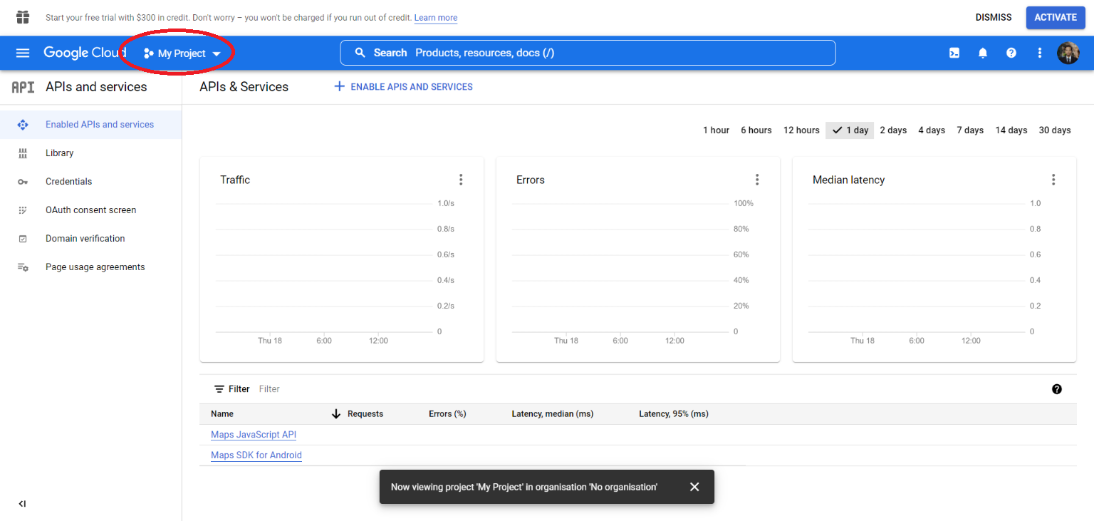 Visitando la consola de las API de Google. Así es como se ve la página cuando se escribe este artículo.